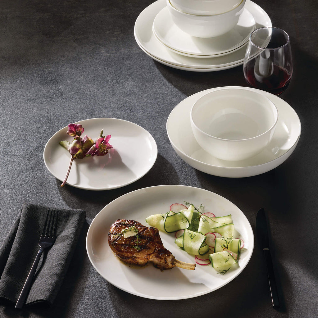 The Alliston Collection is made of premium quality bone china, crafted with high-quality materials and carefully constructed for optimal durability. A superior manufacturing process ensures a smooth and consistent colour, finish and texture. Each piece is meticulously glazed to ensure an even layer of protection against cracking and peeling for long-term use and enjoyment.